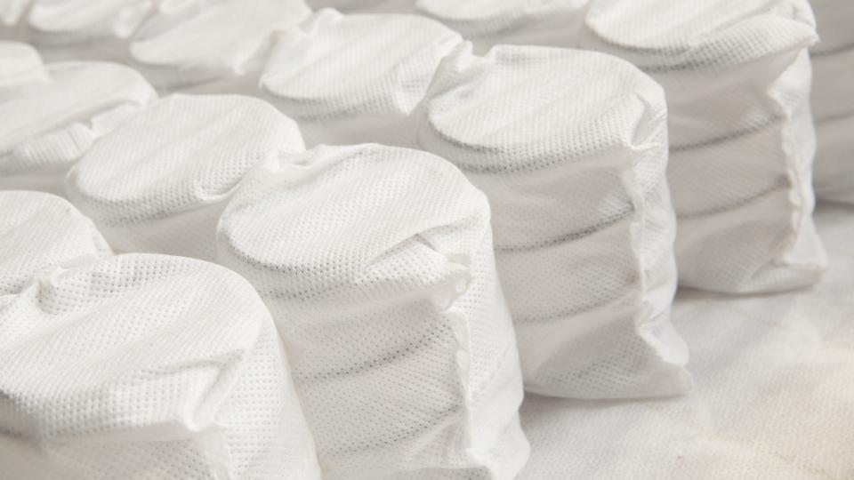 “Sprung” is a blanket (sorry) term that encompasses a range of different designs. Pocket sprung mattresses (pictured below) are the most popular, in which the springs are sewn into fabric pockets.