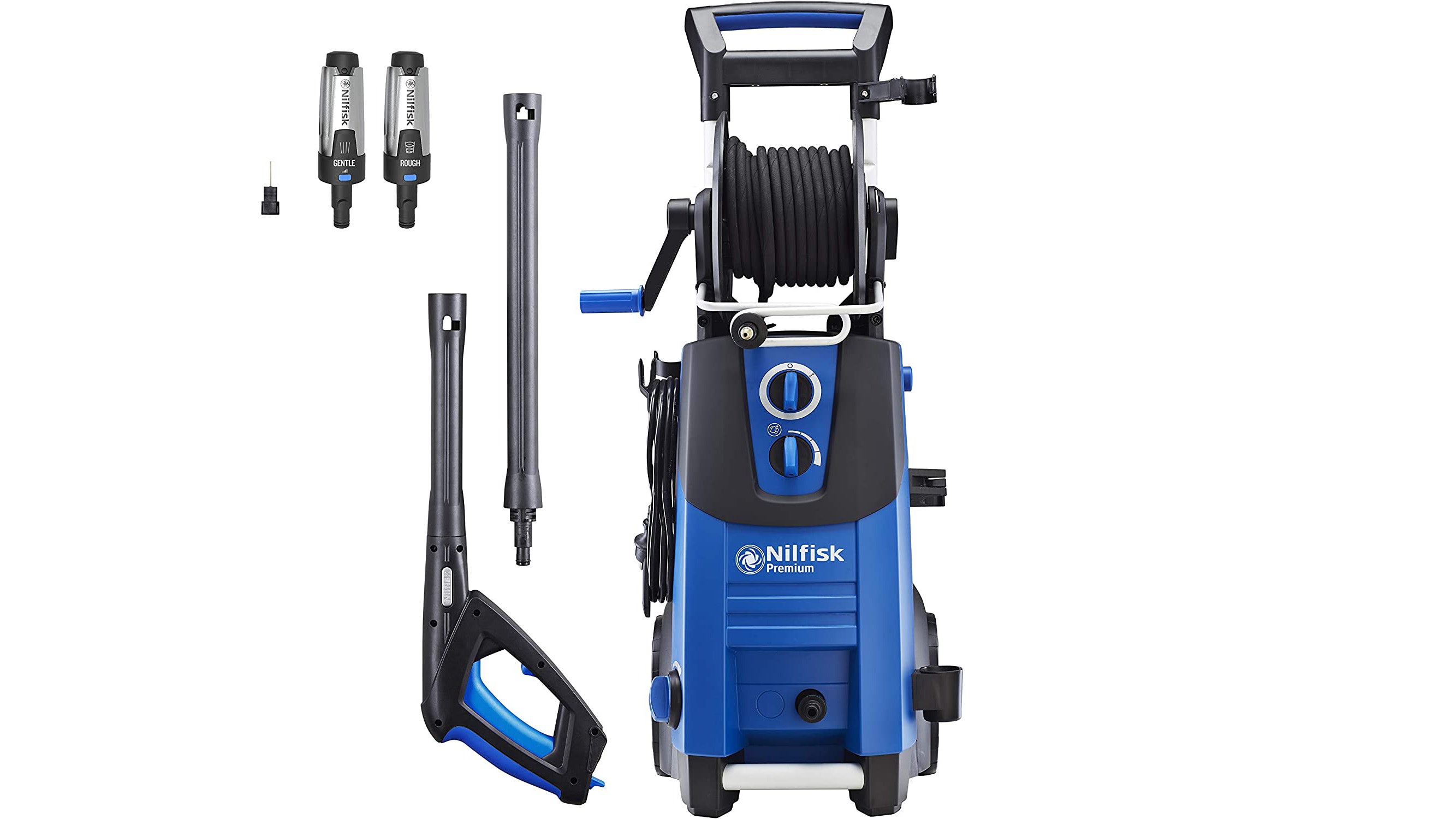 That’s also reflected in the performance. Even with the Gentle nozzle, which adjusts from a wide fan to a fearsome jet, it can blast through the toughest dirt and grime in seconds. On some surfaces, it might even be too tough, so it’s good that you can ramp back the pressure with a quick turn of the dial. Switch to the Rough nozzle with its rotary jet and there’s very little this won’t get through; it effortlessly cleaned paint marks and stains from concrete that lesser pressure washers couldn’t shift. This is a practical, pro-level tool that’s built to work hard.