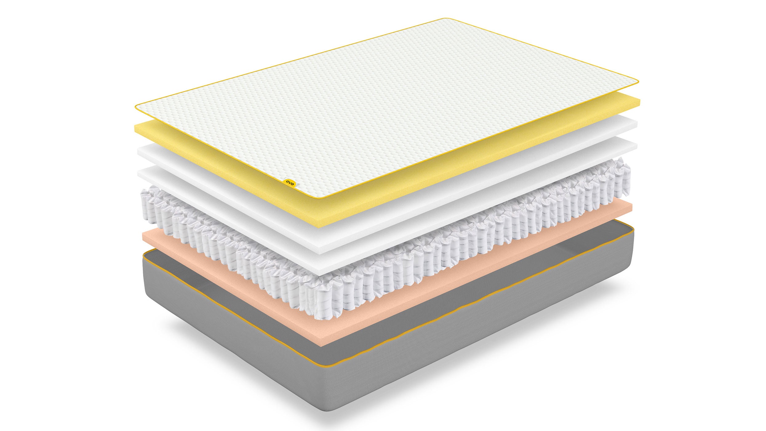 Somewhat confusingly, then, the Eve Original Hybrid is an all-new model that combines a total of four memory foam layers with traditional pocket springs. On top, there’s 35mm of Eve’s springy “comfort layer” foam which it claims is 30 times more breathable than traditional foam. Next up is 30mm of memory foam, followed by a 25mm support layer.