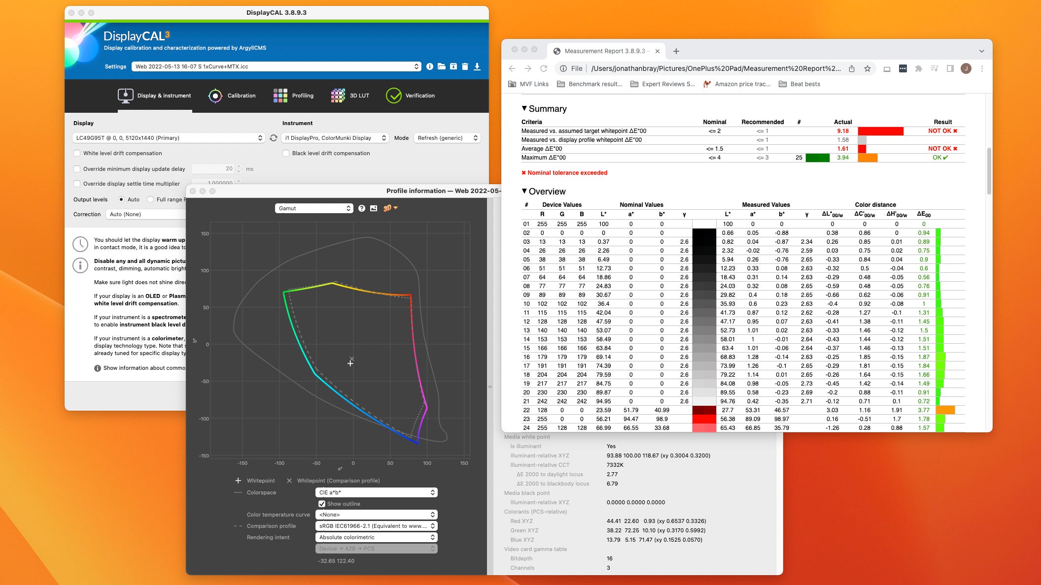 We use an X-Rite colorimeter and the DisplayCal software to do this, recording a display’s peak brightness, contrast ratio, total colour reproduction and colour accuracy, as well as display backlight uniformity.