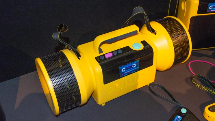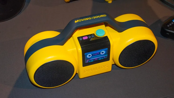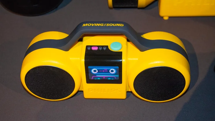 The Moving Sound lineup includes two portable speakers and two pairs of headphones, all of which draw inspiration from the brand’s 1980s Philips Moving Sound design and will be available in either a striking yellow or less attention-grabbing black.