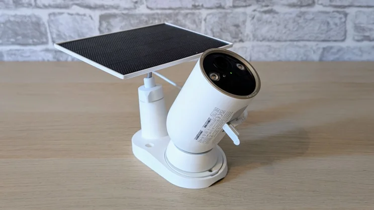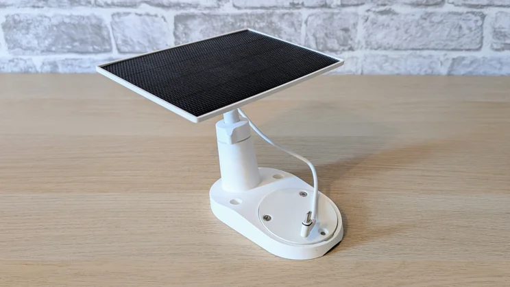 - The camera and solar panel share a single mount
